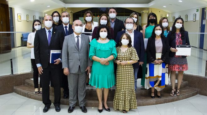 Após o lançamento, foram homenageados a coordenadora do Comitê, juíza Antônia Dilce Rodrigues Feijão; o coordenador médico do NAT-JUS, José Carlos Jucá Pompeu Filho; o secretário de Saúde do Estado, Marcos Gadelha; a secretária de saúde do Município, Ana Estela Fernandes Leite; a juíza Helga Medved, ex-coordenadora do NAT-JUS; e o secretário executivo, Manuel Yury Trindade pelo esforço empenhado na elaboração do Manual.