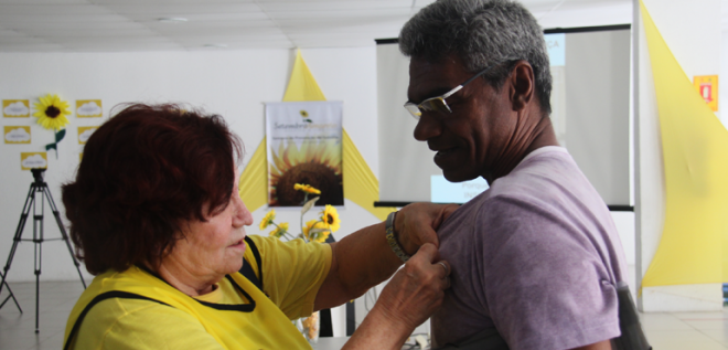 Tatiana Sales, servidora da 2ª Vara da Infância e Juventude, recebeu das voluntárias o lacinho amarelo símbolo da campanha. “Aqui no Fórum recebemos pessoas muito fragilizadas. Então essa mobilização é muito importante, porque acolhe as pessoas de alguma forma, mostrando quais os canais de ajuda e como proceder”, declarou.