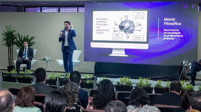 O magistrado levantou questionamentos sobre os caminhos a serem percorridos para as instituições se tornarem mais eficientes a partir do uso da Inteligência Artificial. “O que é bom? O que é ruim? O que é justo? A minha ideia é primeiro a gente explorar um pouco, do ponto de vista da neurociência, como funciona de fato o processo decisório, e o quão nós somos bons ou não nisso, para depois a gente construir parâmetros para a regulação da tecnologia”.