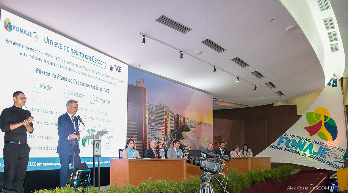 Cada vez mais comprometido com a sustentabilidade ambiental, o Tribunal de Justiça do Ceará (TJCE) está promovendo o primeiro evento da história do Judiciário estadual a ter emissões de Gases de Efeito Estufa (GEE) quantificadas e neutralizadas. Trata-se do 55º Fórum Nacional dos Juizados Especiais (Fonaje), iniciado nessa quarta-feira (28/05), que segue até sexta (30) na Universidade do Parlamento Cearense (Unipace), que fica nas dependências da Assembleia Legislativa do Estado (Alece).
