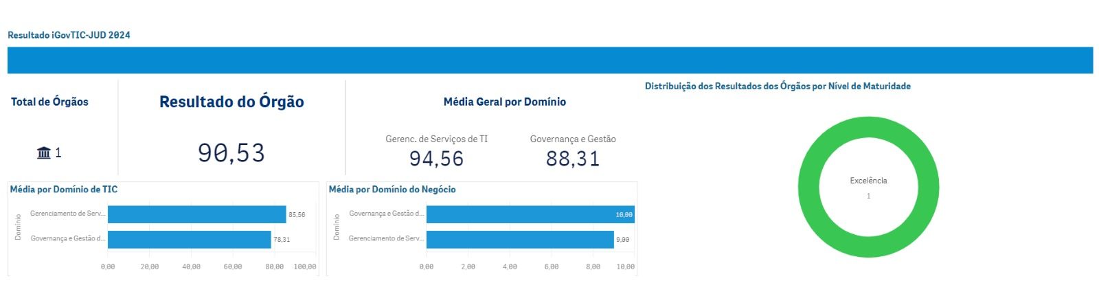 Participam desse ranking 92 órgãos, classificados de acordo com os seguintes níveis de maturidade: Baixo, Satisfatório, Aprimorado e Excelência. O Judiciário cearense atingiu o nível de excelência com a média de 90,53 pontos, número acima da média geral nacional, que foi de 87,42. O TJCE também superou a média dos resultados nos temas “Estruturas Organizacionais e Macroprocessos”, “Infraestrutura Tecnológica e Serviços em Nuvem”, “Transformação Digital”, “Riscos, Segurança da Informação e Proteção de Dados” e “Pessoas”.