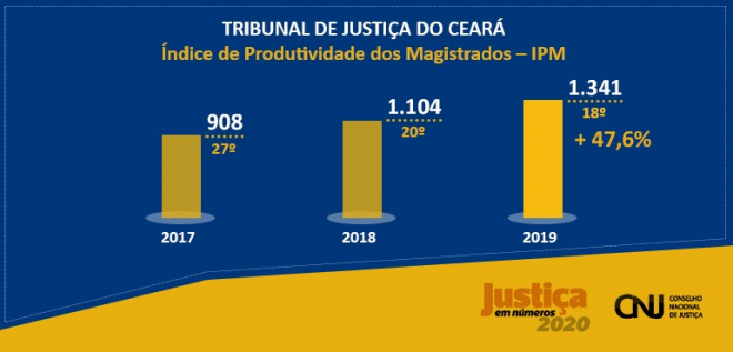 O Tribunal de Justiça do Ceará (TJCE) avançou, pelo segundo ano consecutivo, no Índice de Produtividade dos Magistrados (IPM) do Conselho Nacional de Justiça (CNJ). De acordo com o relatório “Justiça em Números” 2020 (ano-base 2019), divulgado nesta terça-feira (25/08), a média cearense é de 1.341 processos baixados, aumento de 237 em comparação a 2018, que registrou 1.104.