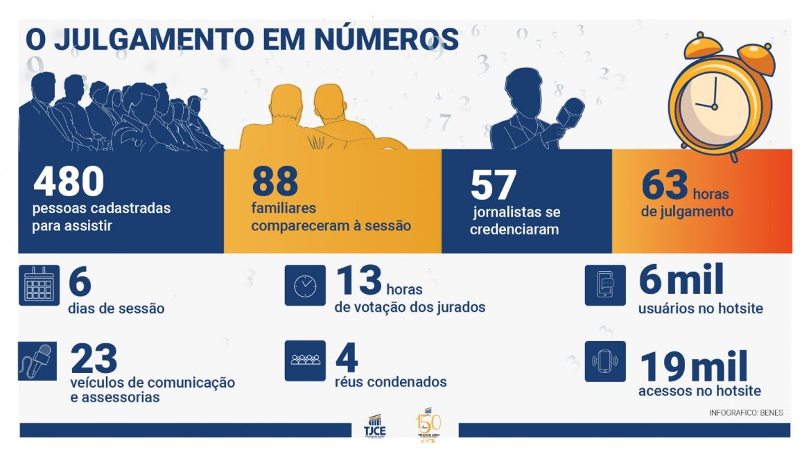 O Tribunal de Justiça do Ceará (TJCE), por meio da Diretoria do Fórum Clóvis Beviláqua, fez todo um trabalho para dar suporte à realização do julgamento. Um total de 480 pessoas, entre estudantes e o público em geral, se cadastraram para assistir presencialmente o júri, além de 88 familiares das vítimas e réus, como também o credenciamento de 57 jornalistas.