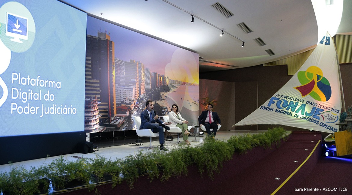 O segundo dia do Fórum Nacional de Juizados Especiais (Fonaje) foi marcado pela troca de experiências entre representantes do Poder Judiciário de todo o país e demais instituições do Sistema de Justiça. Nessa quinta-feira (29/05), os debates sobre inovação também movimentaram a programação, com destaque para o uso da Inteligência Artificial (IA) e da robotização para a melhoria dos serviços judiciais. Promovido pelo Tribunal de Justiça do Ceará (TJCE), o evento acontece na Universidade do Parlamento Cearense (Unipace), localizada na sede da Assembleia Legislativa do Estado (Alece).