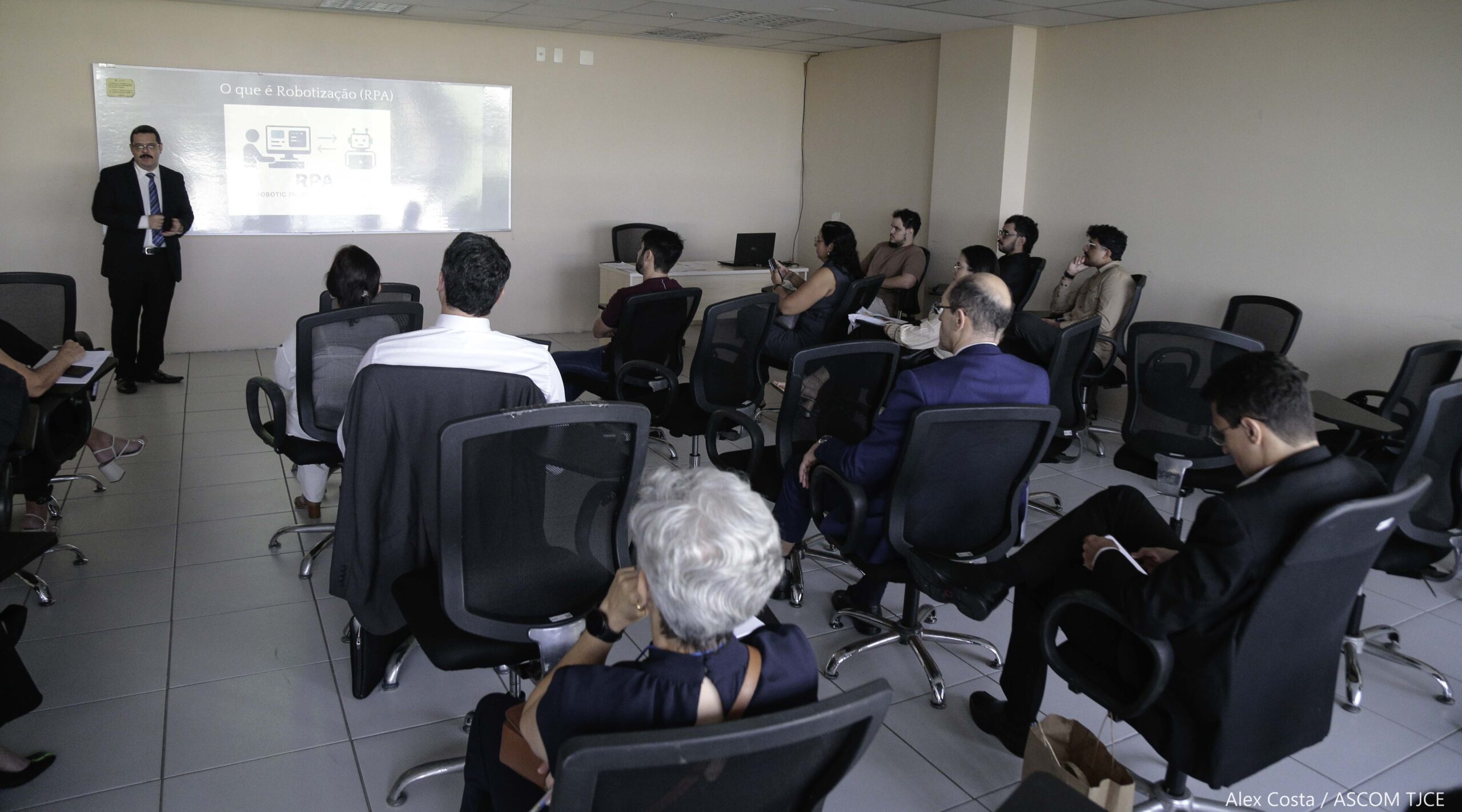 A programação continuou ao longo da tarde com palestra sobre Inteligência Artificial, conduzida pelo servidor Rafael Garcia Barbosa, diretor de IA e Plataformas Digitais do TJCE. Paralelamente, ocorreram as oficinas promovidas pelos Laboratórios de Inovação dos Tribunais de Justiça do Ceará (LabLuz) e de Minas Gerais (Uai Lab), com foco em Linguagem Simples e Robotização.