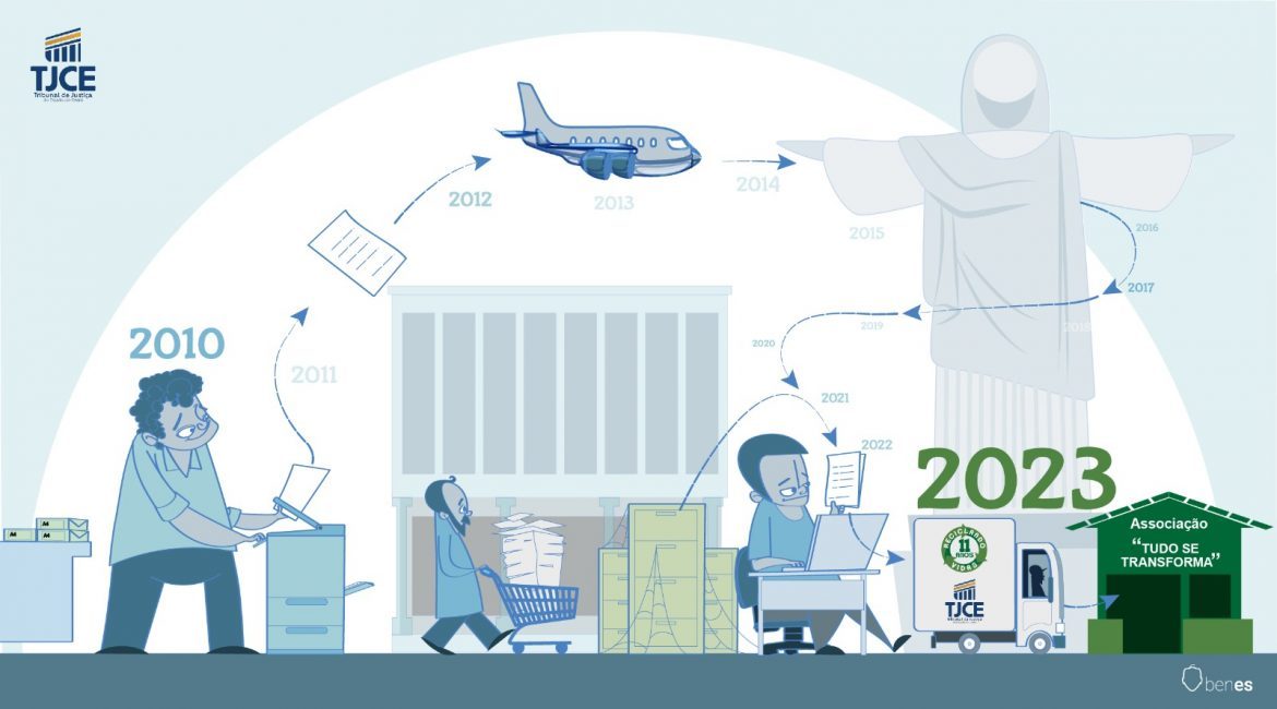 Em agosto de 2022, o Judiciário cearense deu início ao projeto de descarte de petições físicas, que estavam armazenadas no Serviço de Protocolo desde 2009. Foram liberadas, de uma só vez, quase 6 mil toneladas de documentação. Toda essa movimentação precisou ser divulgada por meio de edital, para garantir a transparência do ato e a possibilidade de resgate.