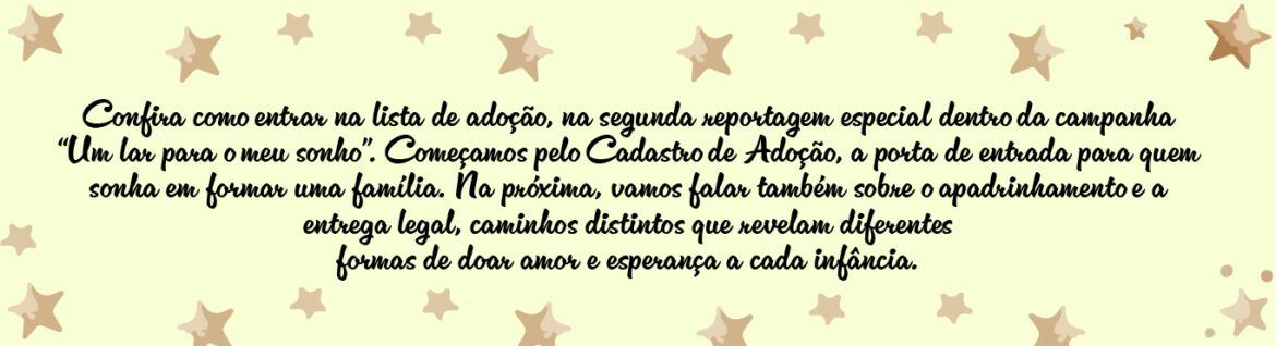 Para mais informações, acesse AQUI a Cartilha da Adoção do Conselho Nacional de Justiça.