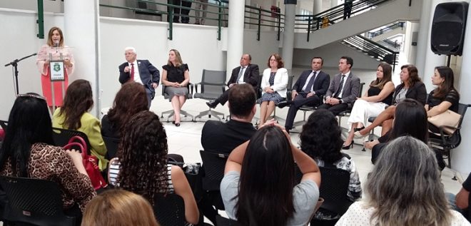 Além da magistrada, compareceram o corregedor-geral da Justiça do Ceará, desembargador Teodoro Silva Santos, as juízas Ana Cristina de Pontes Lima Esmeraldo (diretora do FCB), Andréa Pimenta Freitas Pinto (coordenadora do Nupemec) e Ana Kayrena da Silva Freitas (coordenadora do Cejusc da Comarca de Fortaleza); o juiz José Maria dos Santos Sales (presidente da Associação Cearense de Magistrados – ACM); o procurador-geral de Justiça, Plácido Barroso Rios; o procurador-geral do Estado, Juvêncio Vasconcelos Viana; Suzyanne Pessôa de Paula, presidente da Comissão Especial de Mediação, Conciliação e Arbitragem da OAB/CE; e a defensora pública Denise Sousa Castelo.